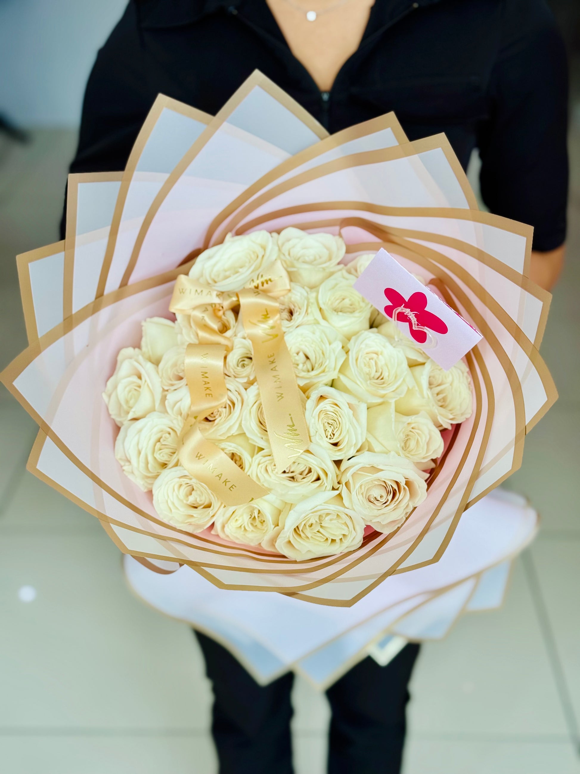 Nuestros arreglos son hechos a mano con flores naturales, por lo que ningún producto se replica de forma exacta. Las fotos sirven como inspiración de estilo y diseño.